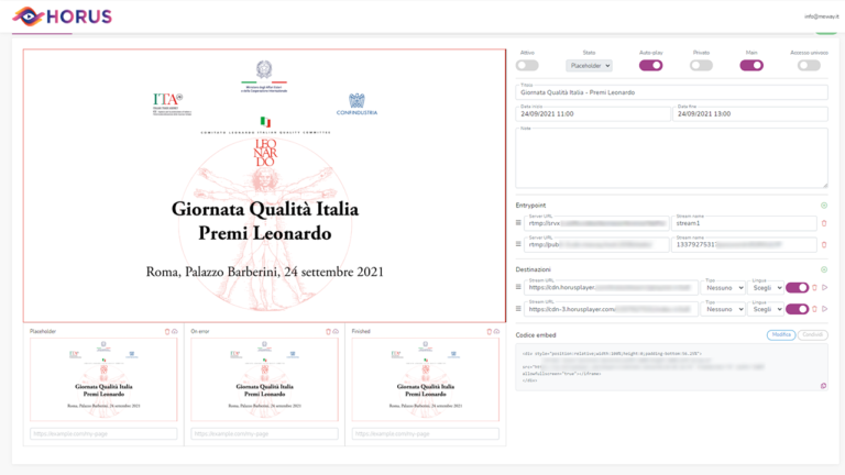 La ridondanza automatica assicura continuità senza interruzioni visibili anche in caso di problemi tecnici sulla sorgente principale. Il player supporta autenticazione avanzata, restrizioni geografiche e protezione tramite token o password per un accesso sicuro e controllato.